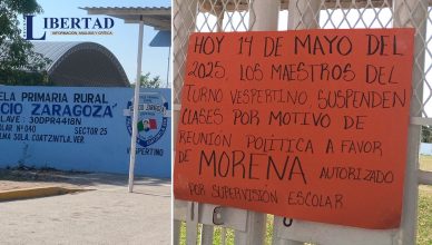 Sacrifican la educación por convocatoria a mitin de MORENA en Coatzintla mayo 14, 2025mayo 14, 2025Redaccion >> Padres de familia denuncian suspensión de clases porque maestros se reunieron con Jorge Alanís, y además les regalarón un «puentecito» de 5 [...]