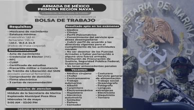 Invitan a integrarse a la Armada de México mayo 13, 2025mayo 14, 2025Redaccion >> Personas interesadas en Bolsa de Trabajo del Sector Naval de Tuxpan podrán acercarse al módulo de la explanada del Palacio Municipal. Poza [...]