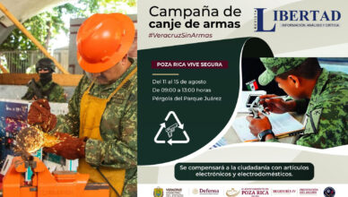 Invitan a construir una Poza Rica más segura agosto 7, 2025agosto 13, 2025Redaccion >> Del 11 al 15 de agosto, canjea armas por electrodomésticos en el Parque Juárez. Poza Rica, Ver. – Del 11 al 15 [...]