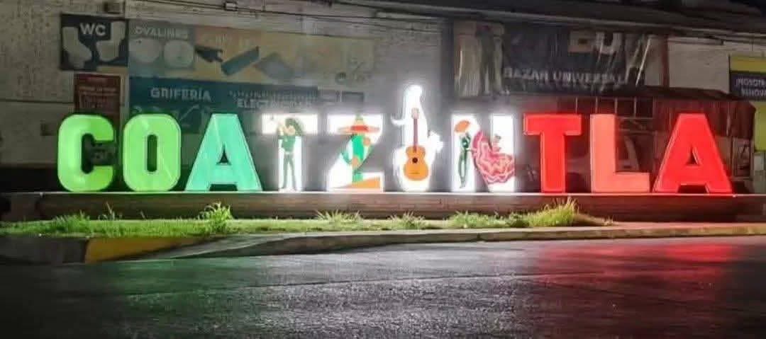 Coatzintla, Ver.– El Gobierno Municipal que preside César Ulises García Vázquez, resaltó la identidad y el orgullo de Coatzintla al iluminar las letras monumentales de la cabecera municipal con los colores patrios.