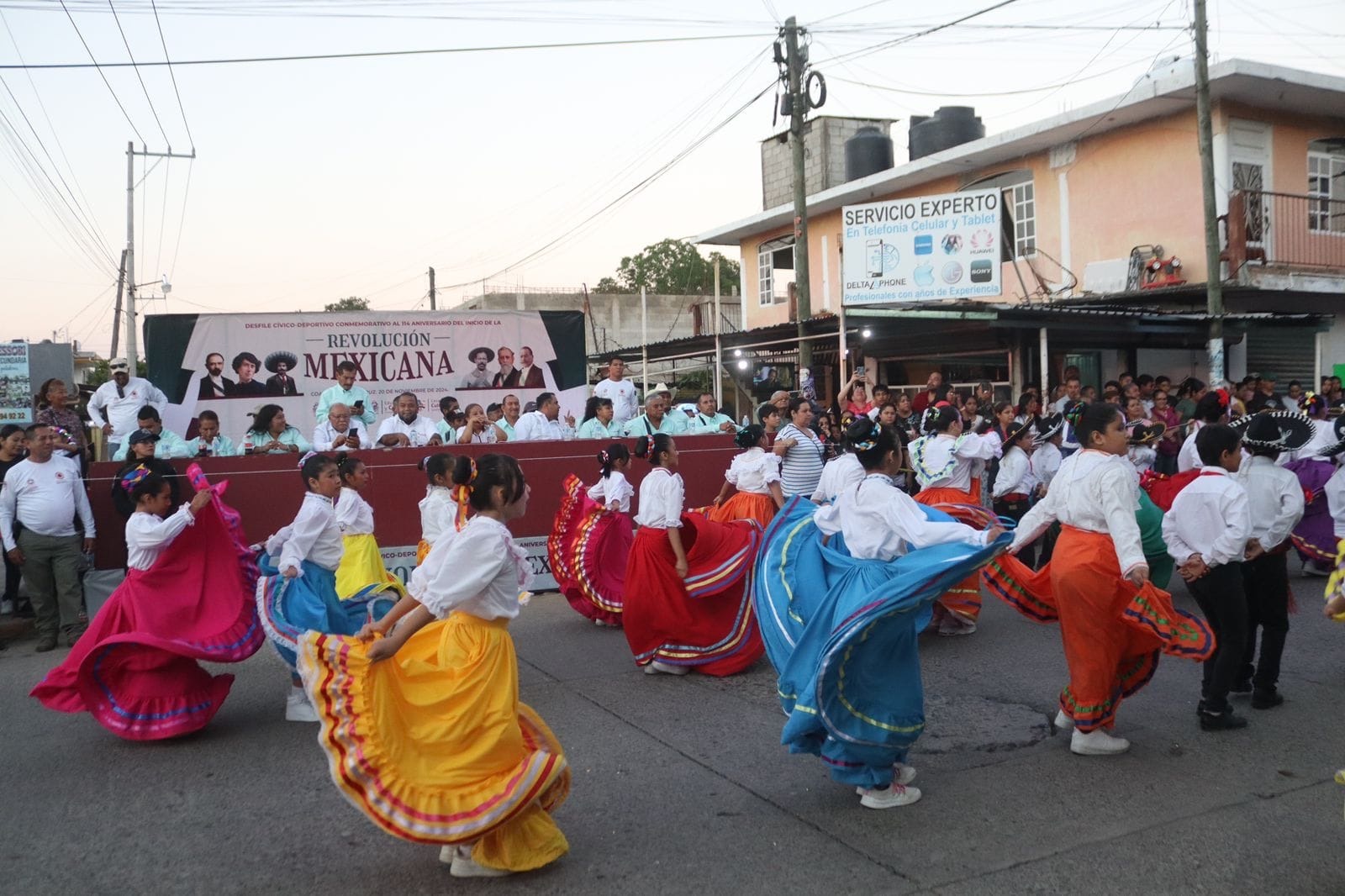 Coatzintla, Ver.- La esplendorosa tarde fue el marco ideal para la realización del Desfile Conmemorativo por el 114 Aniversario del Inicio de la Revolución Mexicana en el que decenas de contingentes recorrieron la ruta tradicional con las autoridades que encabeza el Presidente Municipal, César Ulises García Vázquez, integrantes de su Comuna y agentes y subagentes de las comunidades.