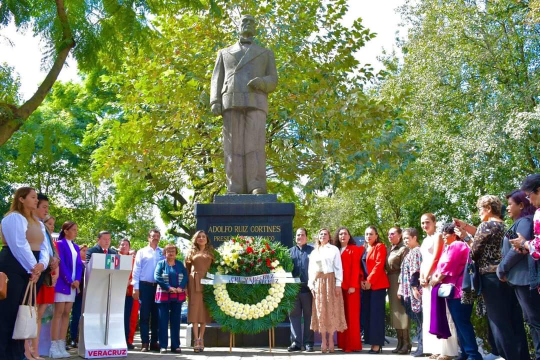 Xalapa, Ver.- Priistas veracruzanas y veracruzanos montaron una guardia de honor frente al monumento al Ex Presidente de la República, Adolfo Ruiz Cortines, para conmemorar el 71 aniversario del Voto de la Mujer en México.