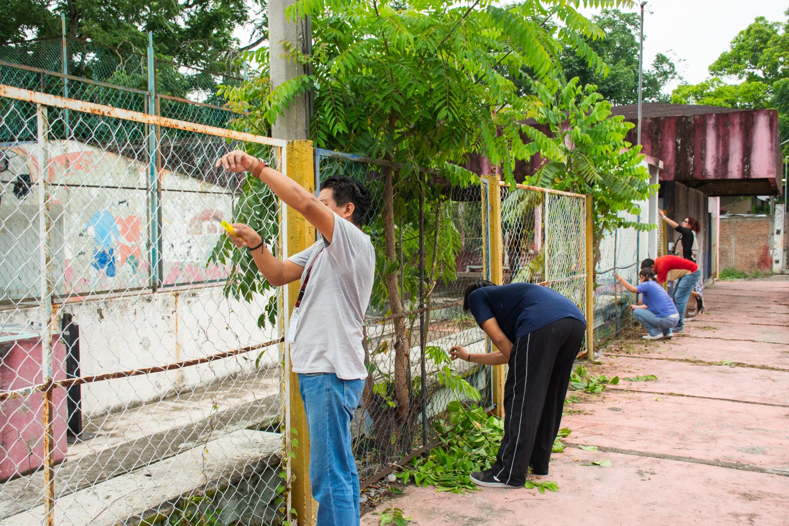 Poza Rica, Ver. – En el marco de las actividades del Mes de la Juventud, el Ayuntamiento de Poza Rica llevó a cabo el Tequio para cuidado ambiental en el Parque Infantil y Cancha de Usos Múltiples “Benito Juárez”, ubicado en la colonia del mismo nombre.