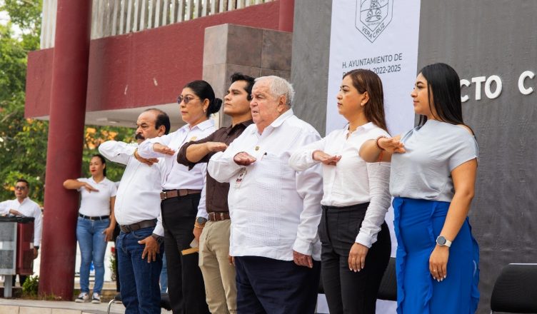 Durante el evento, se rindieron honores al lábaro patrio y se entonó el Himno Nacional Mexicano, en presencia de autoridades municipales, personal del Ayuntamiento, representantes de instituciones educativas y ciudadanía en general.