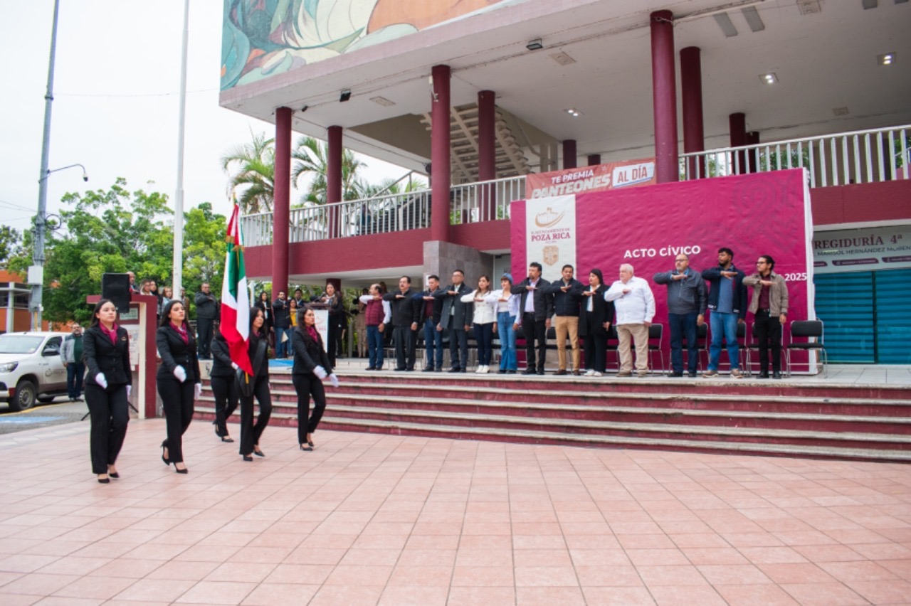 Poza Rica, Ver. – En un evento que demuestra su compromiso con los valores cívicos, el Presidente Municipal de Poza Rica, Fernando Remes Garza, encabezó este lunes 13 de enero el primer acto cívico del 2025, marcando el inicio del programa anual de actividades orientadas a fortalecer los valores cívicos en la población.