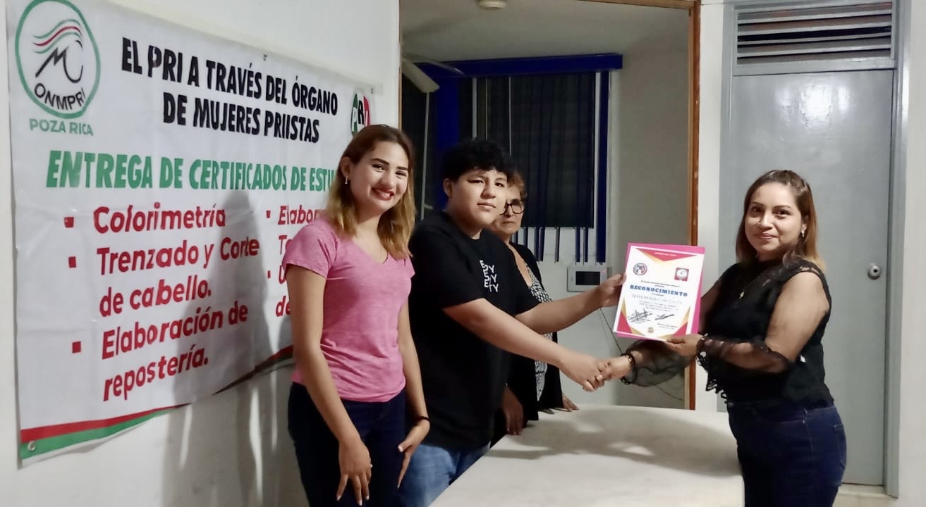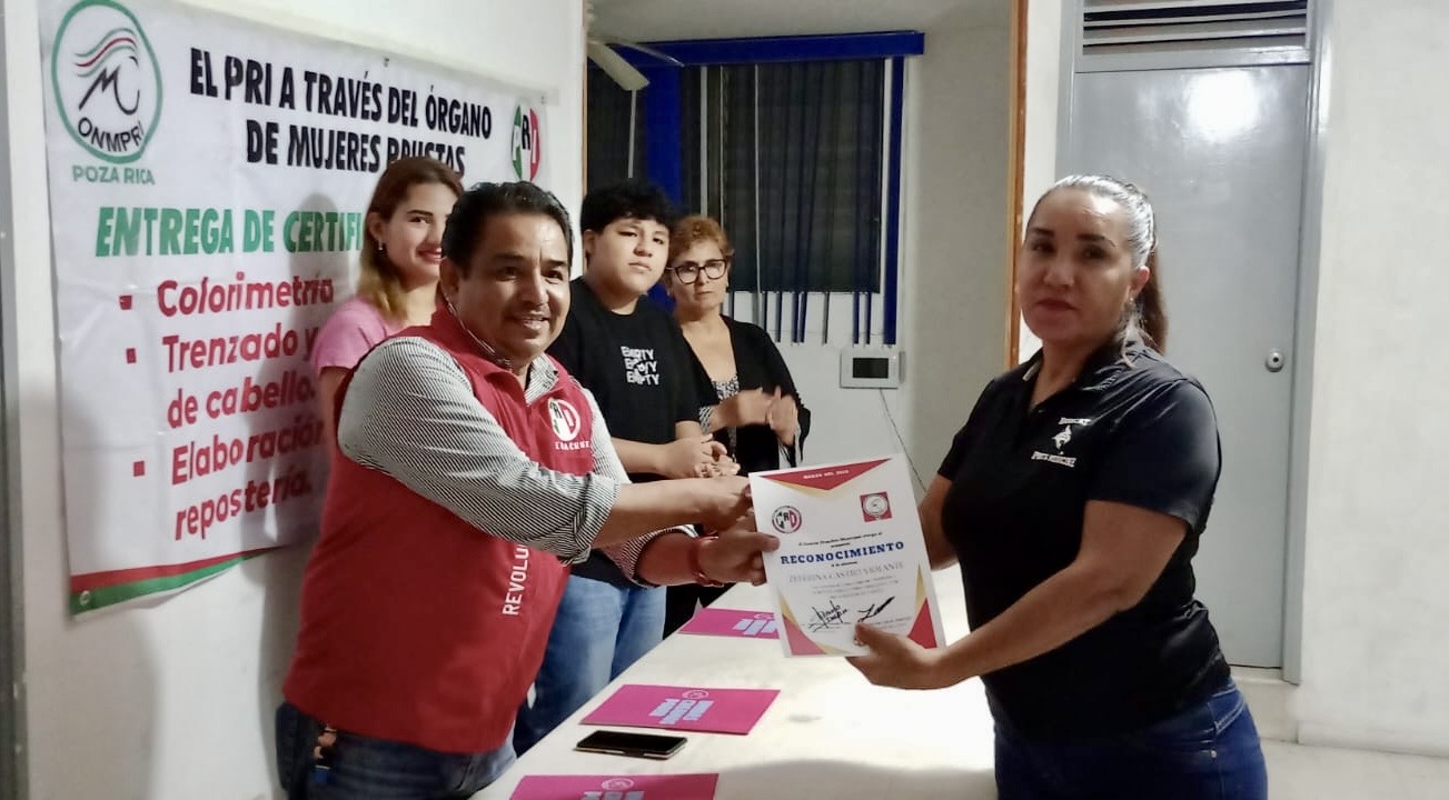 Poza Rica, Ver.-. Luego de tres meses del Curso Taller de “Barbería y Corte de Cabello para Caballero”, el Comité Directivo del PRI Poza Rica por conducto del Organismo Nacional de Mujeres Priistas (ONMPRI), entregaron los reconocimientos oficiales de este programa que busca impartir conocimientos para emprender autoempleos.