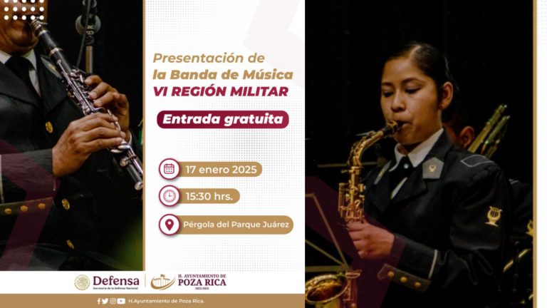 >> El viernes 17 de enero a las 15:30 horas en la Pérgola del Parque Juárez. Poza Rica, Ver. – La Secretaría de … Sigue leyendo Invitan a disfrutar la presentación de la Banda de Música de la VI Región Militar en Poza Rica
