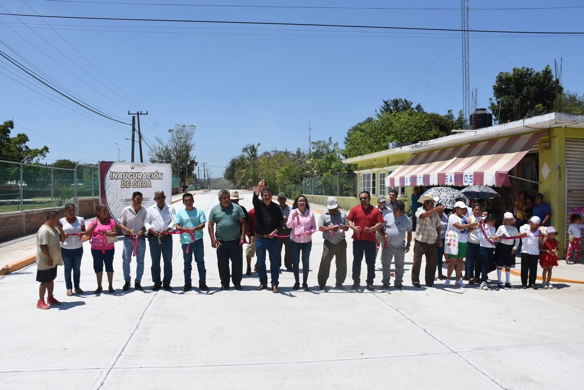 Tihuatlán, Ver., 12 de junio. – En un acto simbólico y con la participación de autoridades locales, vecinos beneficiados y el Alcalde de Tihuatlán, Leobardo Gómez González, realizaron el corte de listón inaugural de la obra de rehabilitación de concreto hidráulico del camino rural que comunica a las localidades de San Pedro Miahuapan, Las Palmas, El Mamey, Poza Azul, Progreso de Maravillas y Francisco I. Madero.