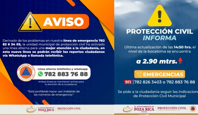 Autoridades municipales exhortan a la ciudadanía a mantenerse atenta a los canales oficiales del Ayuntamiento de Poza Rica y a seguir las recomendaciones emitidas.