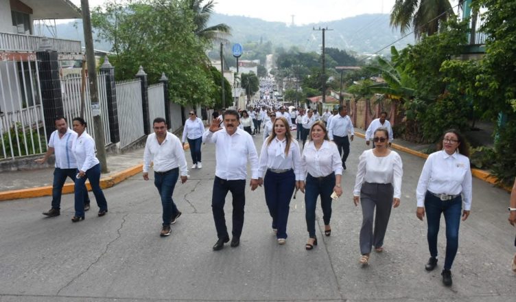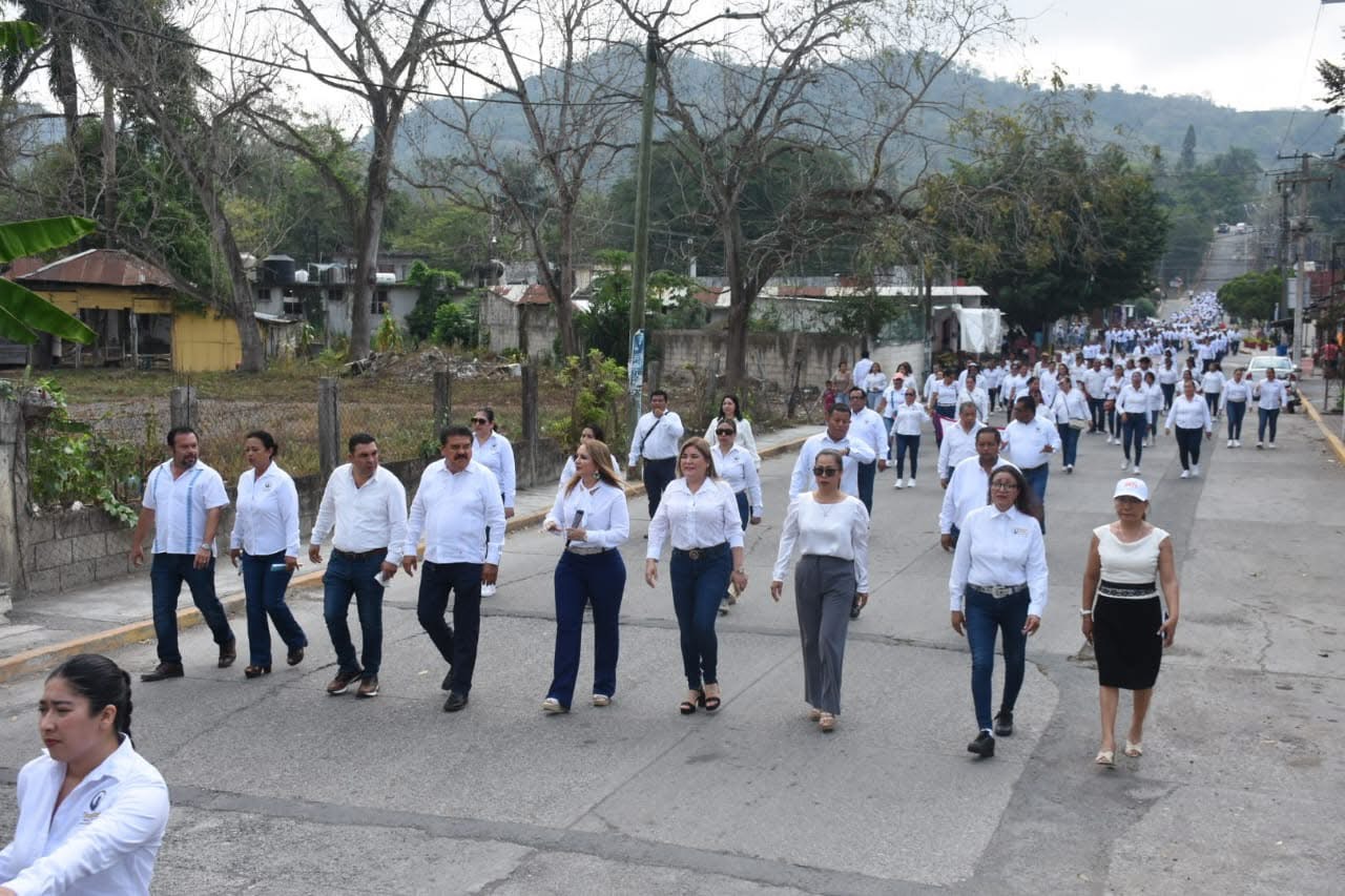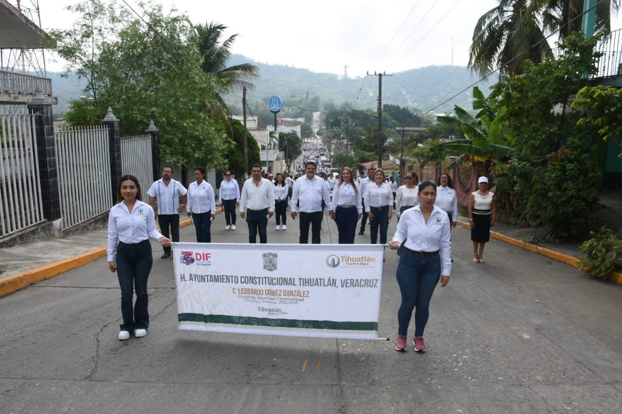 Tihuatlán, Ver.- Autoridades municipales, encabezadas por Leobardo Gómez González y la titular del DIF, Patricia Ortiz de Gómez, así como de varios contingentes compuestos por instituciones educativas, trabajadores de la madera y del volante, entre otros, este día, formaron parte del desfile conmemorativo del 134 aniversario de la lucha del movimiento obrero de Chicago; recordado como el Día del Trabajo.