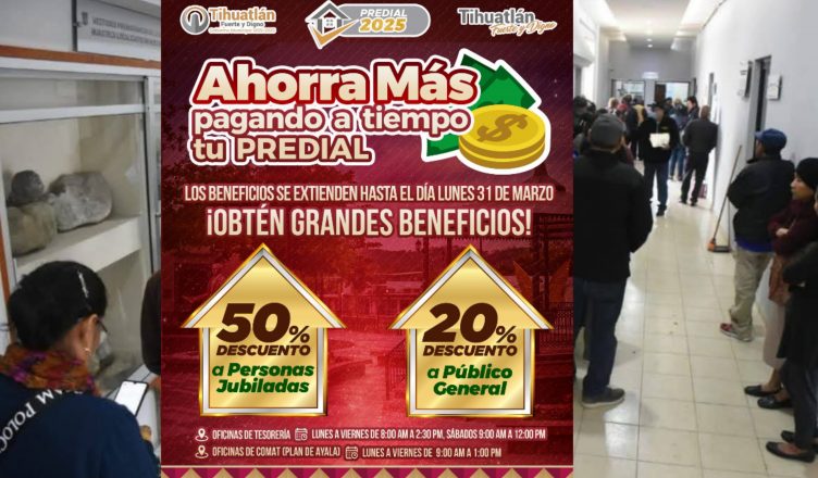 Como parte de una contribución para los tihuatecos, Gómez González, manifestó que la Ley de Ingresos Municipales del estado autorizó que este beneficio se extendiera un mes más, teniendo como máximo hasta el 31 de marzo para liquidar dicho pago.