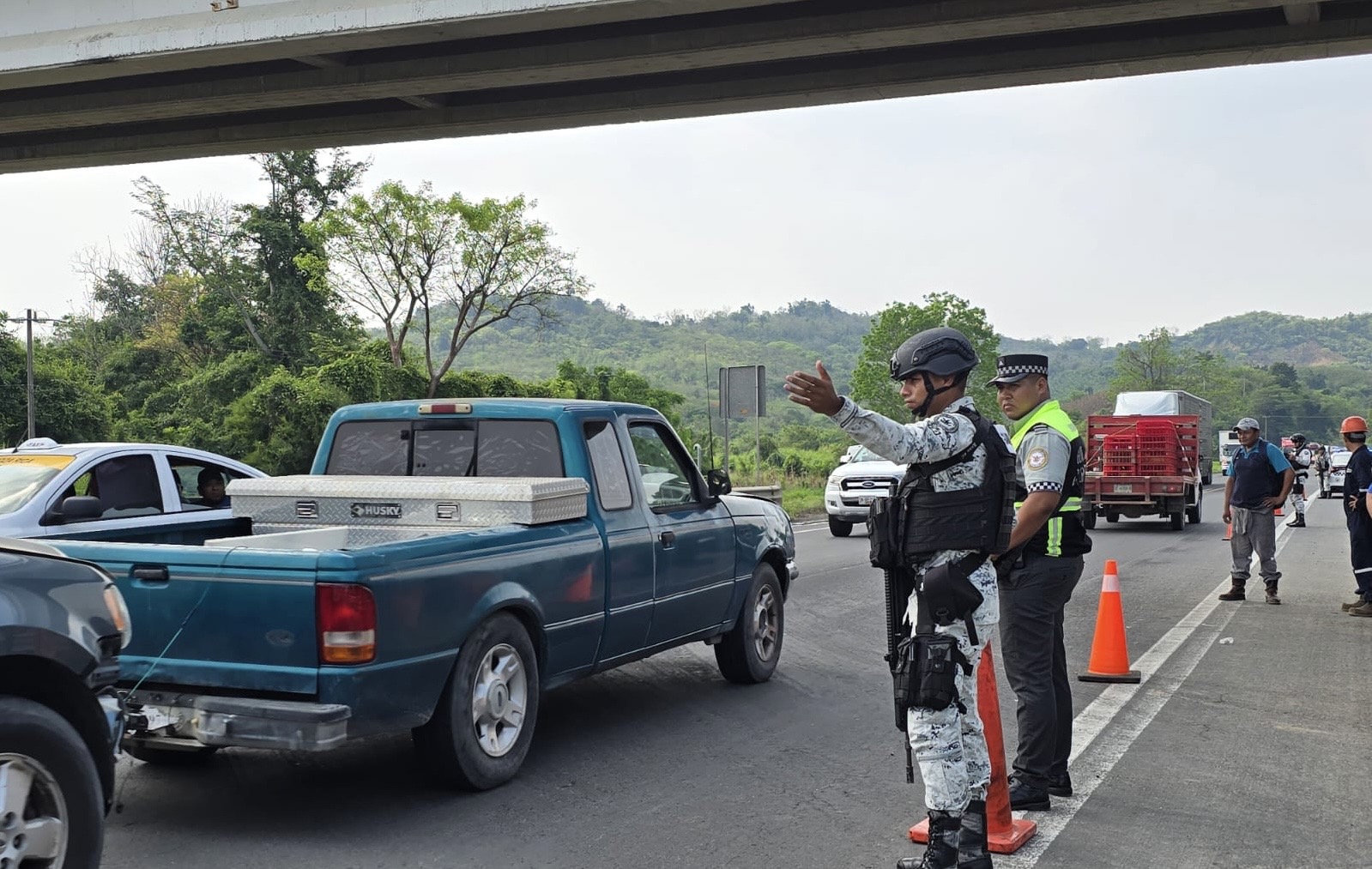 Debido a la magnitud de la protesta, elementos de la Guardia Nacional, Policía Estatal y Policía Vial acudieron al lugar para tomar conocimiento de los hechos y supervisar el desarrollo de la manifestación, buscando mantener el orden público mientras continúan las exigencias por justicia laboral.